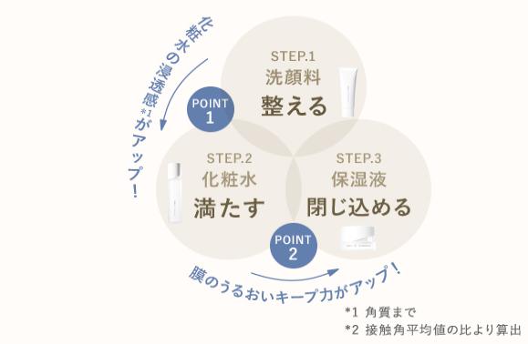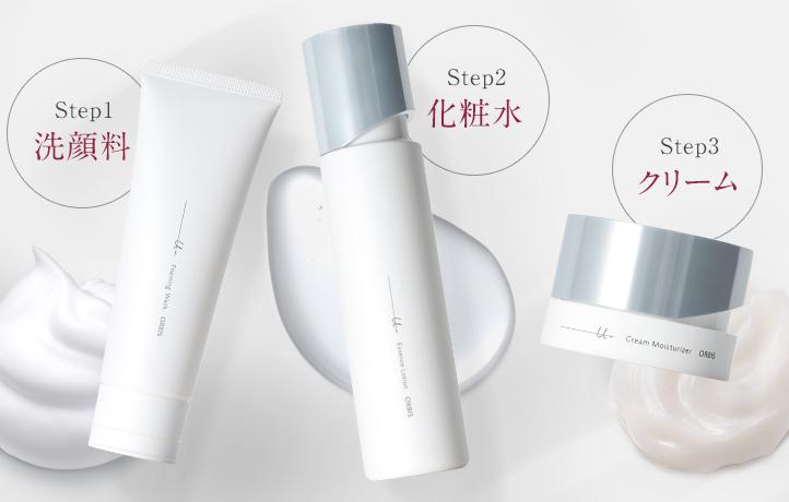 50代から始めるハリツヤ肌ケアの基本は、洗顔、化粧水、保湿液の3ステップを丁寧に行うことです。オルビスユー ドットシリーズは、この3つのステップで肌に豊かな潤いと活力を与えます。